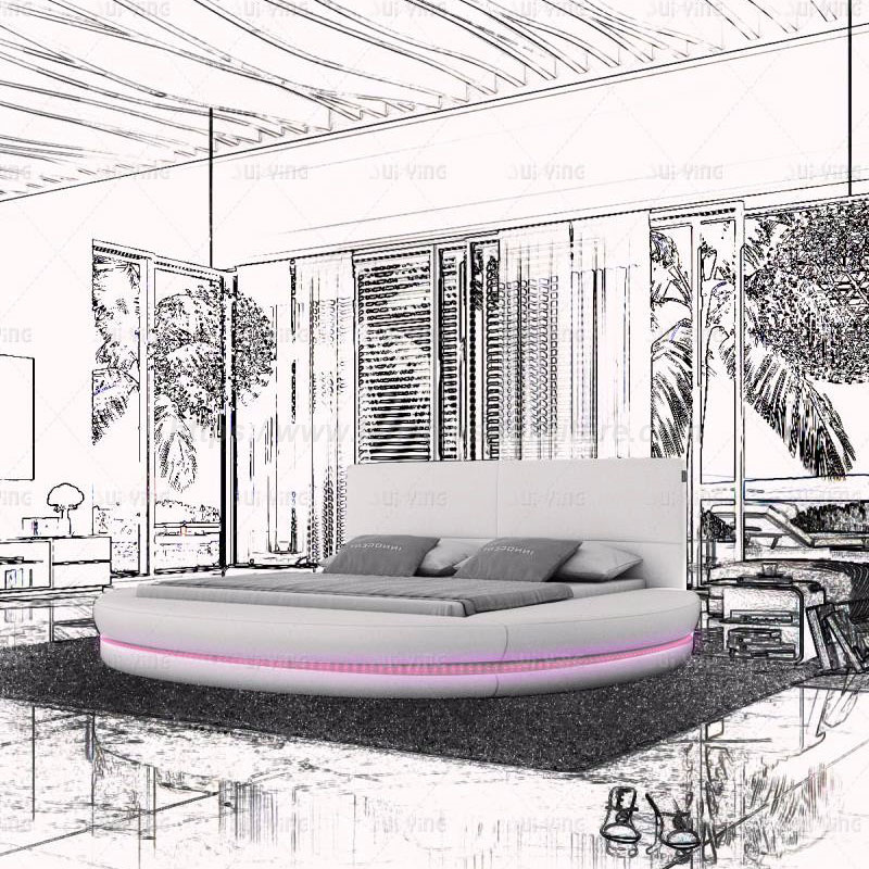 라운드 침대는 18mm 솔리드 페이스 마감과 고급 가죽으로 고급 소재로 제작되었습니다. 침대 옆면에는 가벼운 벨트가 장착되어 있어 편안하고 안락한 생활을 즐기실 수 있습니다.